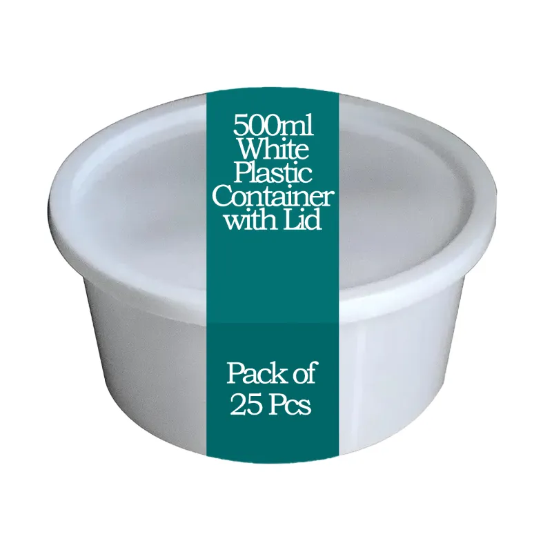 500ml White Plastic Container with Lid For Food Delivery, Takeway and Storage(Pack-25 pcs)