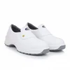 The Allen Cooper AC-1442 Washable Safety Shoe in white features a 200 J steel toe cap that meets European standards, providing high impact protection. It is designed with an animal-free microfiber upper material, making it washable, breathable, and suitable for environments like food workshops, pharmaceutical industry, and operating theaters. The sole is made of DIP dual density polyurethane (PU), offering durability, slip resistance, heat resistance up to 120°C, and antistatic properties. This shoe also includes features like shock absorption, water resistance, and a washable construction for hygiene and safety. It carries certifications including ISI Mark for IS 15298 Part-2 and ISO 20345 standards, ensuring quality and compliance. Sizes range typically from 5 to 13, with a low ankle design for comfort and flexibility in work environments requiring safety footwear.