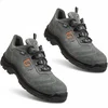 The Allen Cooper ACL 1459 Safety Shoe in grey features a buff suede leather upper with a sporty design that is abrasion-resistant and made for durability. It includes a 200J steel toe cap that provides strong impact protection.