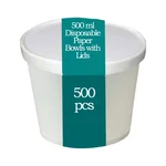 Disposable White Paper Bowls with Lids, 350 ml (500 Pcs)