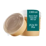 1300ml Brown Kraft Paper Tubs with Transparent PET Lid