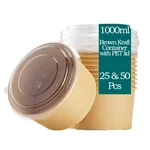 1000ml Brown Kraft Paper Tubs with Transparent PET Lid
