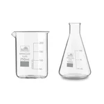 Bello 2pcs Borosilicate 3.3 Glass 250 ml Beaker and 100 ml Conical Flask with