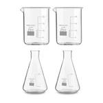 Bello Set of 4 Borosilicate 3.3 Glass Beaker and Conical Flask of 25 ml with
