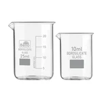Bello Borosilicate 3.3 Glass Beaker 10 ml, 25 ml with Graduation Marks, Set o