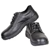 The Coffer Safety M2001 PVC Safety Shoe is designed for industrial safety with strong protective and comfort features. It has a black leather upper paired with a durable PVC sole known for its anti-skid properties, which enhance grip on slippery surfaces. The shoe comes with a steel toe cap that provides impact protection, making it compliant with safety standards.