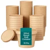 500ml, 330 GSM Round Food Containers with Lids of Brown Kraft Paper for Meal, Takeout and Delivery(Pack-25 pcs)