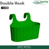 The GTC 14" Multi-Color Double Hook Pot (Pack of 2) features a spacious design with dual hooks for secure hanging and a vibrant multi-color finish. Ideal for medium to large plants, these decorative pots bring modern flair and functional elegance to balconies, fences, gardens, and patios.