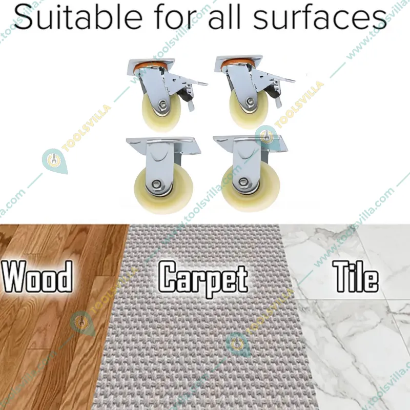 Suwas Trolley 4 x 2 Inch Pack Of 4 Nylon Caster Wheel With 1200 Kg Load Capacity (2 Fixed and 2 Swivel With Brake ) | 6 Months Warranty
