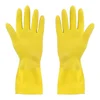 These durable yellow rubber gloves are designed for effective protection during cleaning and chemical handling tasks. Made from natural rubber with a soft cotton flock lining, they provide excellent flexibility, comfort, and grip in wet or dry conditions. The medium-weight construction ensures durability and abrasion resistance, making them ideal for household cleaning, dishwashing, gardening, and light industrial use. Each glove features a rolled beaded cuff to prevent liquid roll-back and enhance durability. Sold in convenient packs of 12 pairs, these gloves are perfect for commercial or bulk usage.