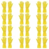 Pack of 12 yellow rubber gloves for cleaning and chemical protection, featuring flock lining and non-slip grip for household and industrial tasks.